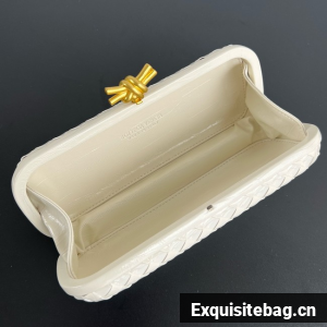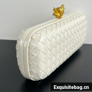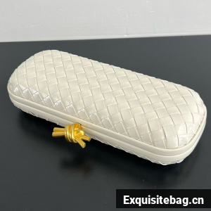 Minaudière clutch with elongated silhouette meticulously crafted from soft padded Intreccio leather.