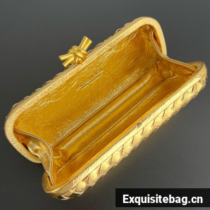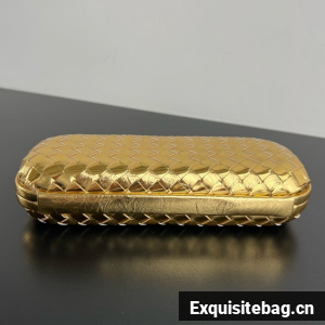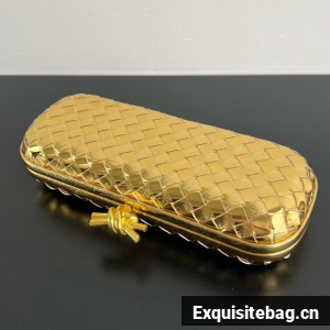 Minaudière clutch with elongated silhouette meticulously crafted from soft padded Intreccio leather.