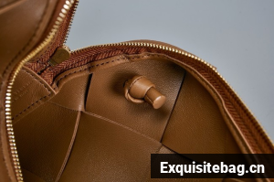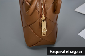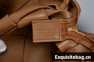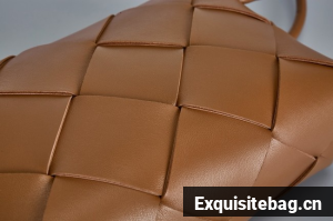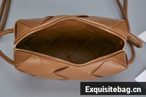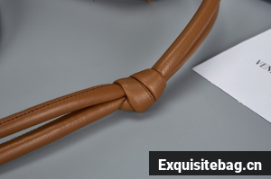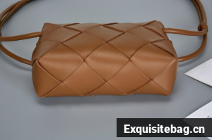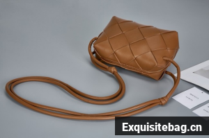 Pouch in Intrecciato nappa leather with adjustable tubular strap featuring sliding knot details.