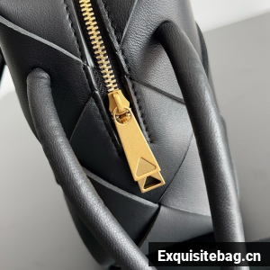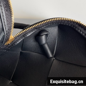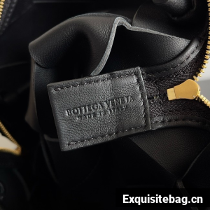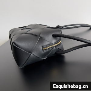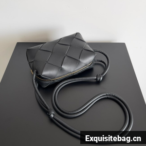 Pouch in Intrecciato nappa leather with adjustable tubular strap featuring sliding knot details.