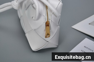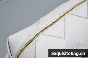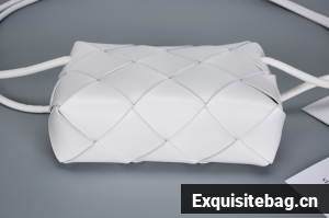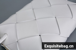 Pouch in Intrecciato nappa leather with adjustable tubular strap featuring sliding knot details.