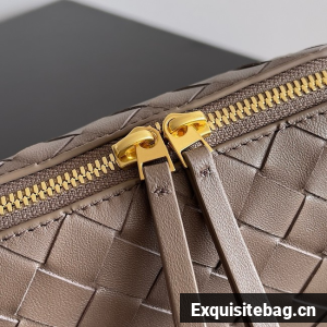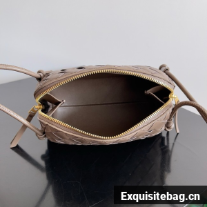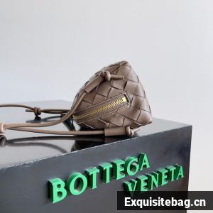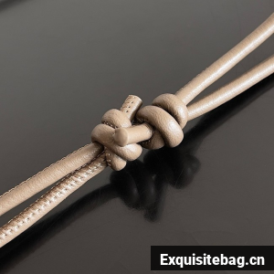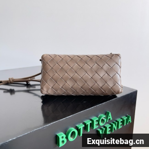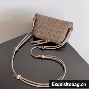 Pouch in Intrecciato nappa leather with adjustable tubular strap featuring sliding knot details.