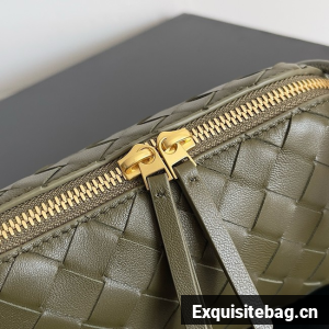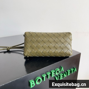 Pouch in Intrecciato nappa leather with adjustable tubular strap featuring sliding knot details.