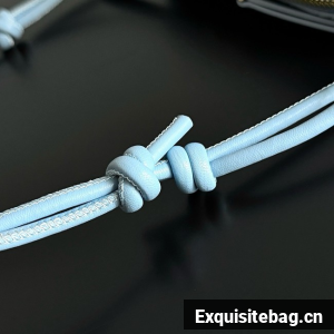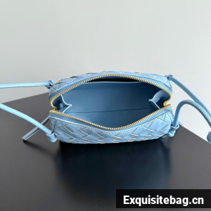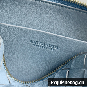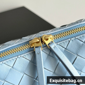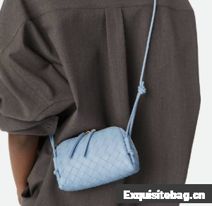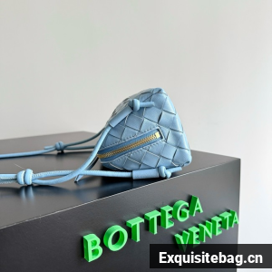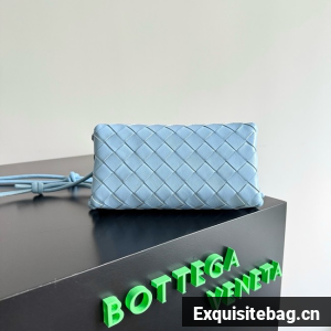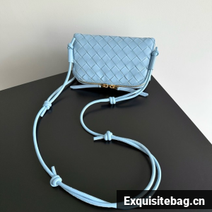 Pouch in Intrecciato nappa leather with adjustable tubular strap featuring sliding knot details.