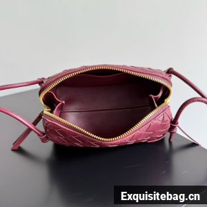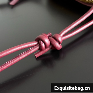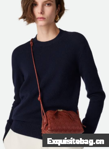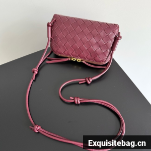 Pouch in Intrecciato nappa leather with adjustable tubular strap featuring sliding knot details.