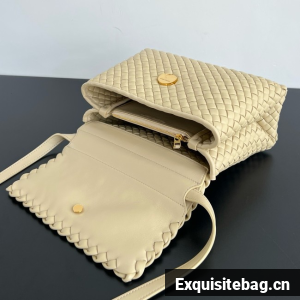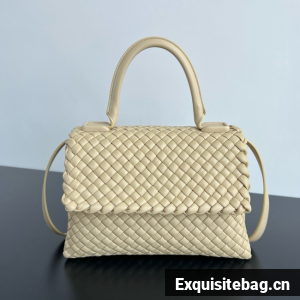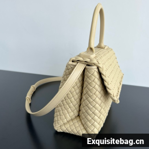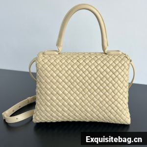 Top handle bag in padded Intreccio leather with detachable cross-body strap.