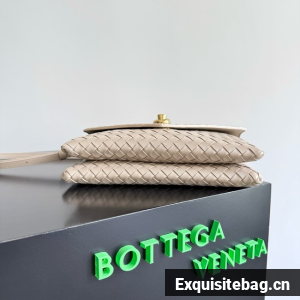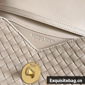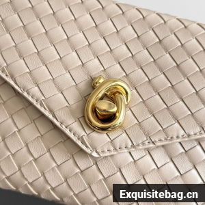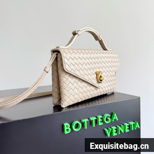 Cross-body bag in Intrecciato piccolo leather with adjustable top handle and sculptural knot closure.