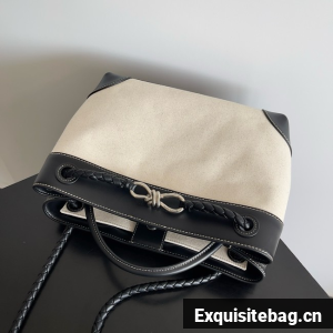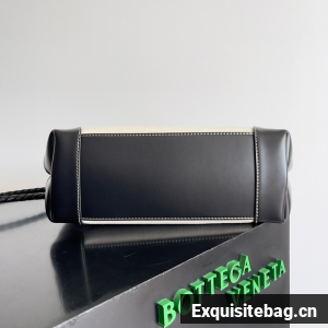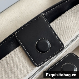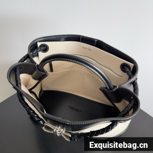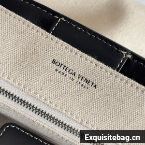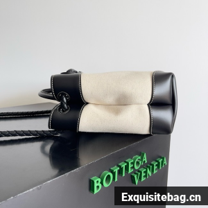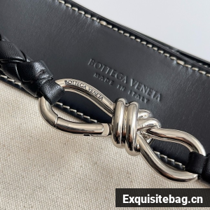 Top handle bag in calf leather and canvas with signature knot detail and sliding cross-body strap.