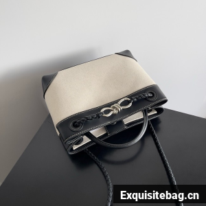 Small top handle bag in calf and canvas with sliding cross-body strap• Compartmented interior with one zipped pocket, two open pockets• Magnetic closure• Material: calf• Lining: Canvas• Hardware: silver finishHeight: 20 cm | 7.9”• Width: 25 cm | 9.8”• Depth: 10 cm | 3.9”• Handle drop: 6 cm | 2.4”Made in: ItalyProduct code: 766014 VMAXG9873Replica Bottega Veneta Comes with serial numbers, authenticity card.