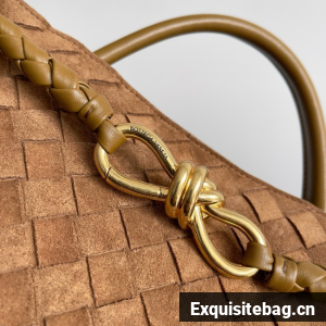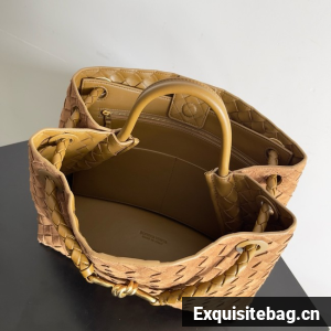 Top handle bag in supple Intrecciato leather with signature knot detail and sliding cross-body strap.