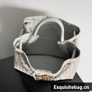 Top handle bag in supple Intrecciato leather with signature knot detail and sliding cross-body strap.