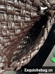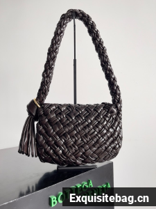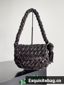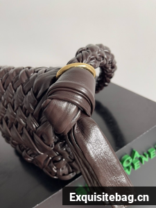 Shoulder bag in soft foulard Intreccio leather with sliding shoulder strap, metallic ring, and knot detail.