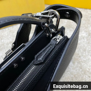 The interior is organized into two compartments divided by a stiff partition, the front features the iconic twist lock and the back a zipper closure. Features a tone on tone leather lining, two compartments separated by a stiff partition, a contrasting-color cardholder slot and palladium-finish metalware.Can be carried by hand or on the shoulder thanks to the handle and adjustable, detachable shoulder strap in webbing with Fendi lettering.Made in ItalyMeasurements:Height : 14.5 cmDepth : 6 cmWidth : 23 cmWeight : 0.44 kgProduct Code: 7VA582AMA3F1JS2Replica Fendi Comes with serial numbers, authenticity card, dust bag and care booklet.