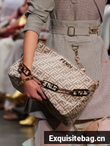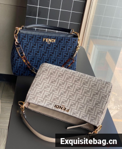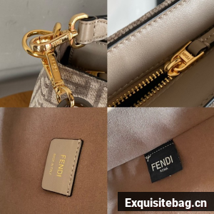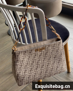 Fendi O Lock Zipper Brown FF jacquard fabric and leather bag F1068 gray