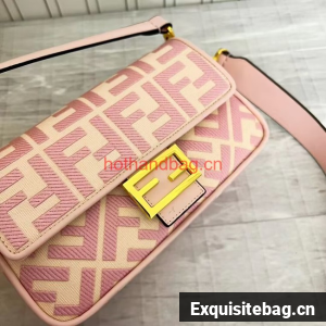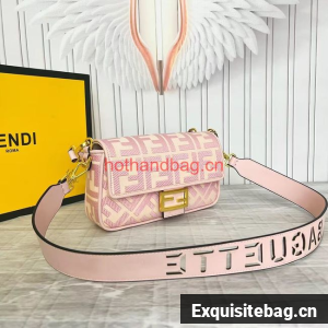 Fendi Baguette canvas bag with FF embroidery 8BR600 pink&white