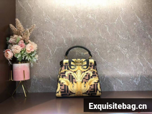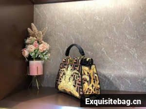 Fendi mini Peekaboo printed silk bag bag F1952 brown