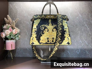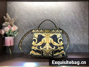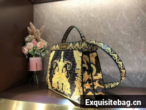 :: Fendi Peekaboo printed silk bag bag F1951 black