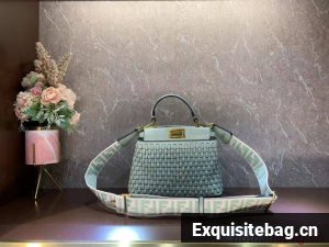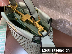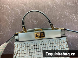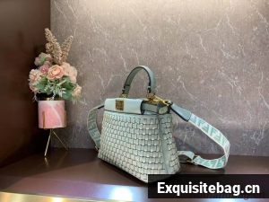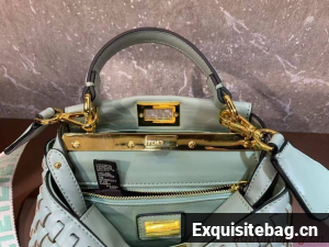 Iconic small Peekaboo bag made of finely braided leather and embellished with the classic twist lock on both sides.