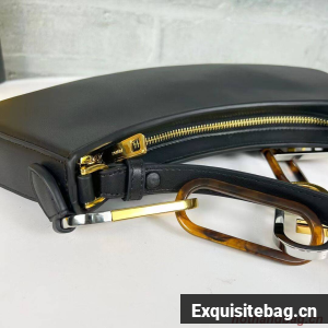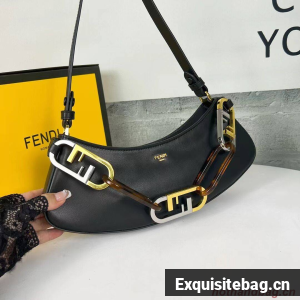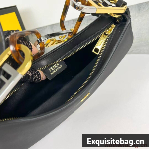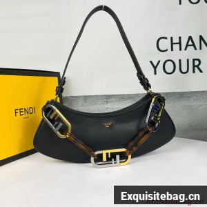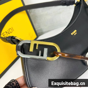 Pouch made of mint leather with zipper closure, decorated with Fendi Roma lettering in gold-colored metal.