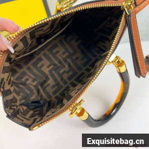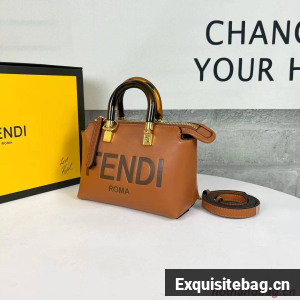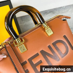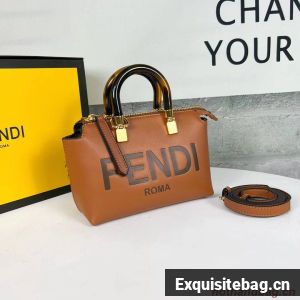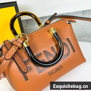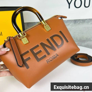 Iconic mini By The Way Boston bag made of leather with hot-stamped FENDI ROMA lettering and rigid tortoiseshell-effect plexiglass handles. Zip fastening.