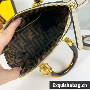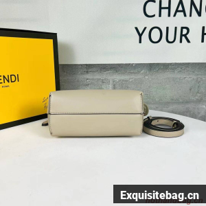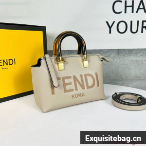 Iconic mini By The Way Boston bag made of leather with hot-stamped FENDI ROMA lettering and rigid tortoiseshell-effect plexiglass handles. Zip fastening.
