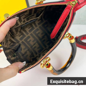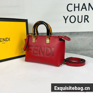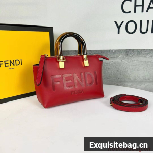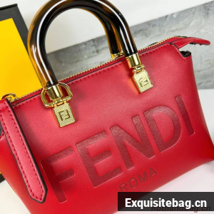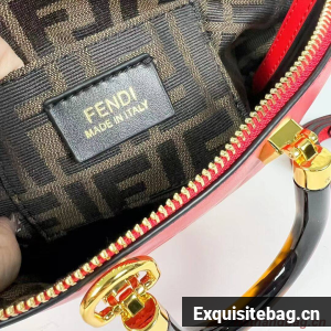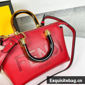 Iconic mini By The Way Boston bag made of leather with hot-stamped FENDI ROMA lettering and rigid tortoiseshell-effect plexiglass handles. Zip fastening.