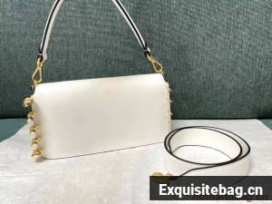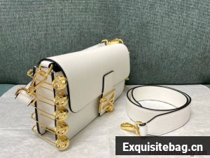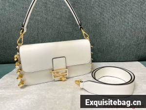 Fendi Baguette brooch Fendace white leather bag 8BR801