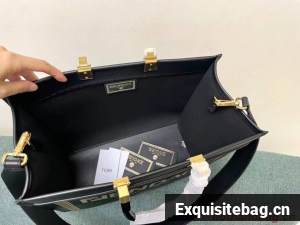 Fendi Sunshine Medium Fendace Printed black leather Logo shopper 8BH386A