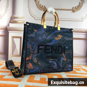 :: Fendi Tote Fabric Graffiti Print Shopping Bag 1676 Blue