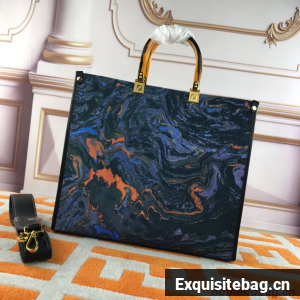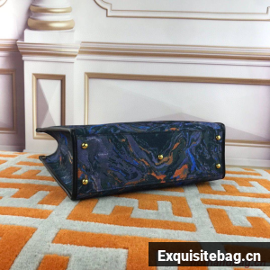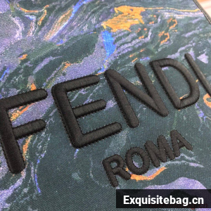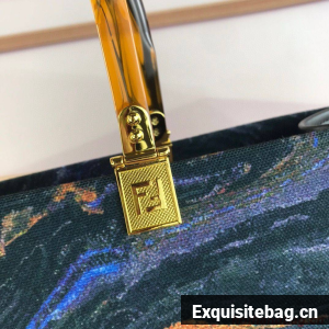Fendi Tote Fabric Graffiti Print Shopping Bag 1676 Blue