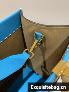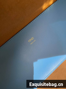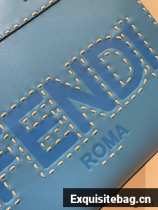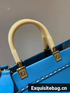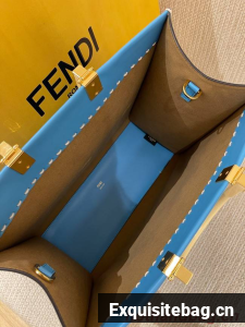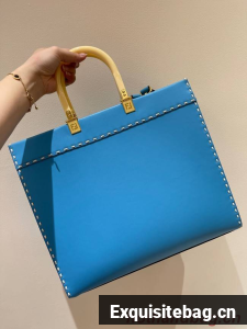 Medium Sunshine Shopper bag in light blue leather with hot-stamped FENDI ROMA motif and tortoiseshell-effect plexiglass rigid handles.