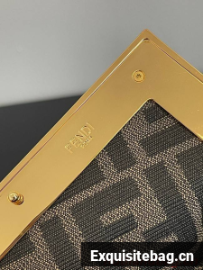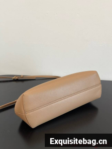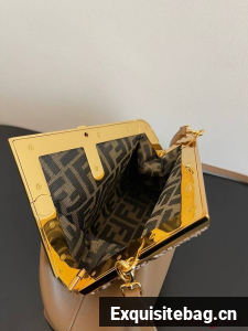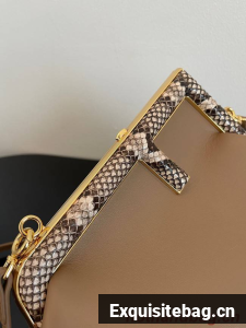Small Fendi First bag in soft nappa leather with an oversized F metal clasp with tone on tone nappa leather bands.