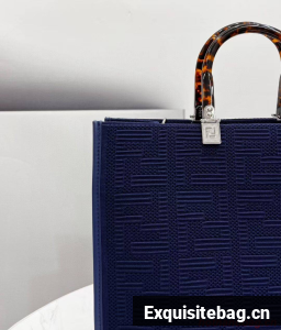 FENDI SUNSHINE MEDIUM FF fabric shopper 8BH386A dark blue