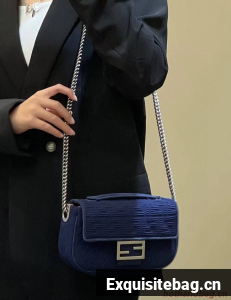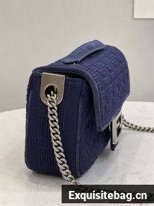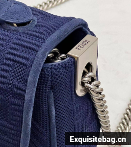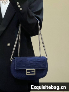 FENDI MIDI BAGUETTE CHAIN FF fabric bag 8BR793 dark blue
