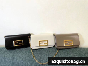 Flap and snap closure, Pequin fabric lining and flat pocket. Equipped with two inner, removable pouches, one with a zipper and one with eight card holder slots. Gold-finish metalware.Can be carried by hand as a clutch or worn on the shoulder thanks to the detachable chain shoulder strap.Made in ItalyProduct Code:8BS032AHM0F0VWMLength:21,5 cmHeight:13, cmDepth:3, cmWeight:0,34 kgComposition:100% calf leather, inside: 100% calf leather, 69% polyester, 20% polyamide, 11% resin Replica Fendi comes with:serial numbers, care booklet, dust bag, Card, tag.
