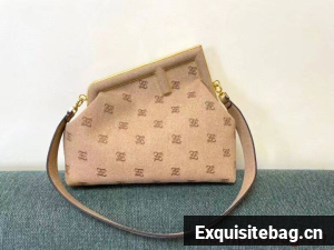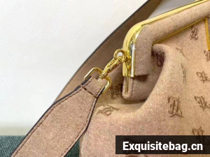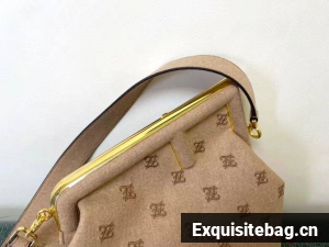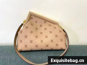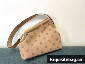 Fendi First bag made of flannel, embroidered with Karligraphy motif. Oversized metal F clasp bound in tone on tone flannel.