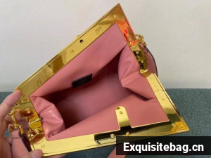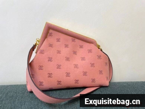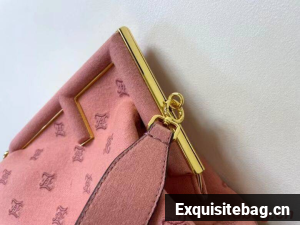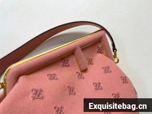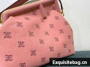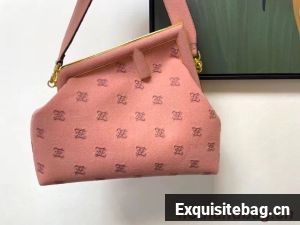 Fendi First bag made of flannel, embroidered with Karligraphy motif. Oversized metal F clasp bound in tone on tone flannel.