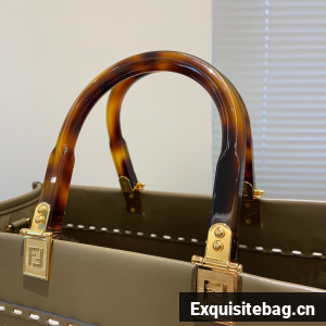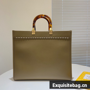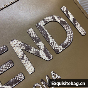 FENDI SUNSHINE Medium Snakeskin Logo Flannel Togo shopper Bag 36553B Gray