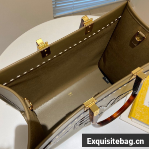 :: FENDI SUNSHINE Medium Snakeskin Logo Flannel Togo shopper Bag 36553B Gray