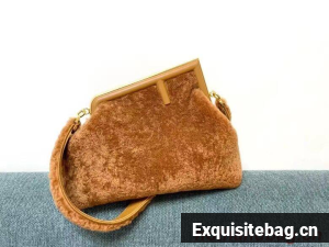 Medium Fendi First bag made of soft, merino wool sheepskin with oversized metal F clasp wrapped in tone on tone nappa leather.