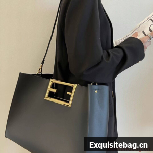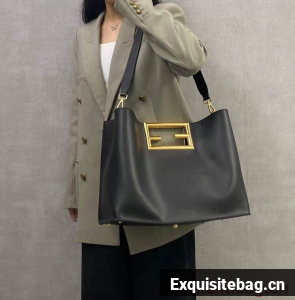 Medium Fendi Way bag made of black-colored leather, with oversize FF logo metal handles.