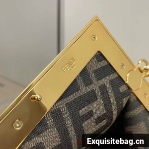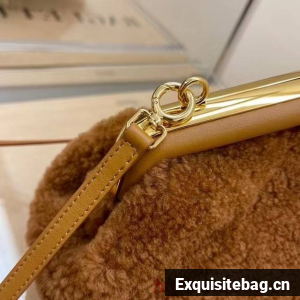 Small Fendi First bag made of soft, pale brown merino sheepskin with oversized metal F clasp bound in tone on tone nappa leather.