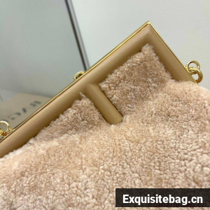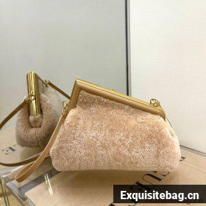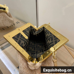Fendi Original lambswool Leather Medium Clutch Bag 56835 Nude