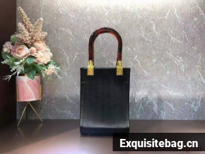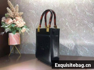 Sunshine Shopper bag made of leather with hot-stamped “FENDI ROMA” and stiff tortoiseshell effect plexiglass handles.