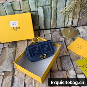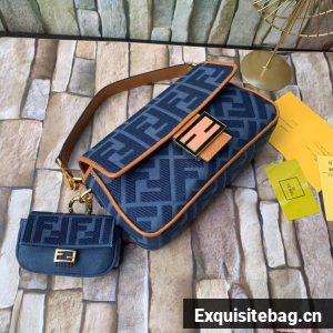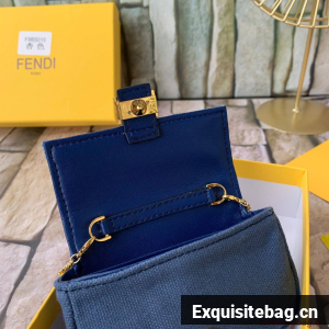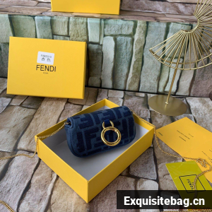 FENDI NANO BAGUETTE CHARM Nappa lcanvas Bag 7AR844 Navy