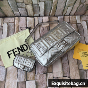 :: FENDI NANO BAGUETTE CHARM nappa leather 7AR844 Silver