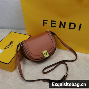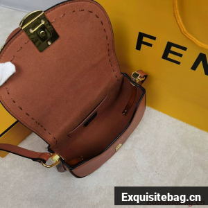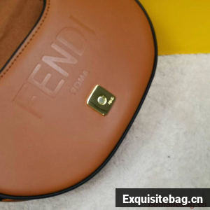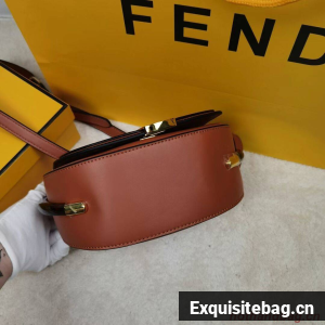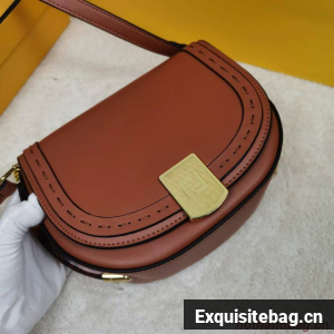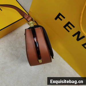 Hand-stitched brown leather satchel featuring a metallic closure with the iconic FF motif and hot-pressed Fendi Roma logo under the flap. With a lined, internal compartment, small inner pocket, tortoiseshell-effect plexiglass details and gold-finish metalware.