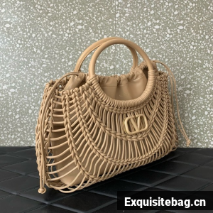 :: VALENTINO VLOGO SIGNATURE RAFFIA Shoulder Bag 5066 white