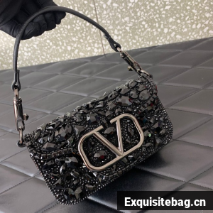 VALENTINO Super Mini Loco imitation crystal chain bag 6038 silver