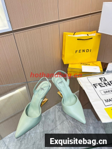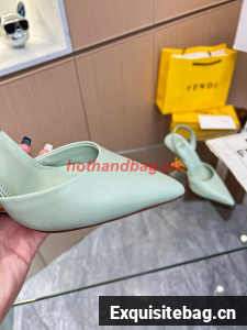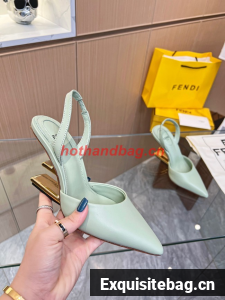 Fendi First slingbacks with a tapered toe and ankle strap. Made of green leather. Diagonal F-shaped sculpted heel in palladium-colored metal.Made in ItalyComposition: 100% calf leather, inside: 100% lamb leatherMeasurements: Heel height: 95 mm